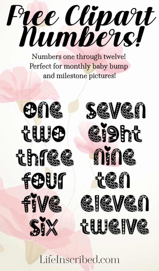 I made these clipart numbers with babies and bumps in mind! Whether to sublimate onto a maternity shirt or a onesie, or to add to a digital scrapbook, these numbers are great for any playful project!